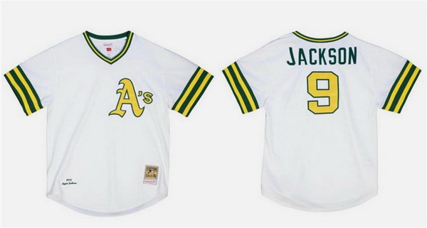 Home>MLB>Oakland Athletics>Men>Men Oakland Athletics 9 Reggie Jackson White Mitchell 26 Ness Stitched Jersey