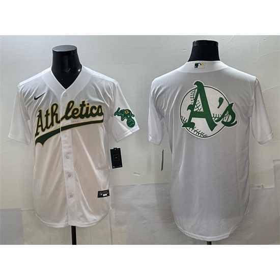 Men Oakland Athletics Team Big Logo White Stitched Baseball Jersey 2