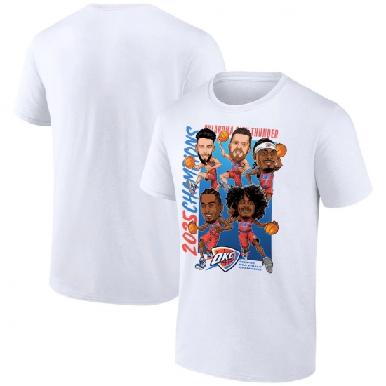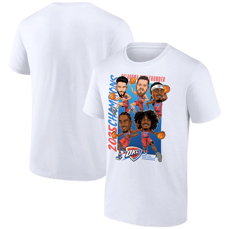Men Oklahoma City Thunder White 2025 Finals Champions Caricature Full Court T Shirt