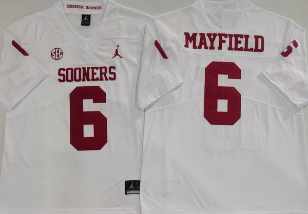 Men Oklahoma Sooners White #6 Baker Mayfield Stitched NCAA Jersey