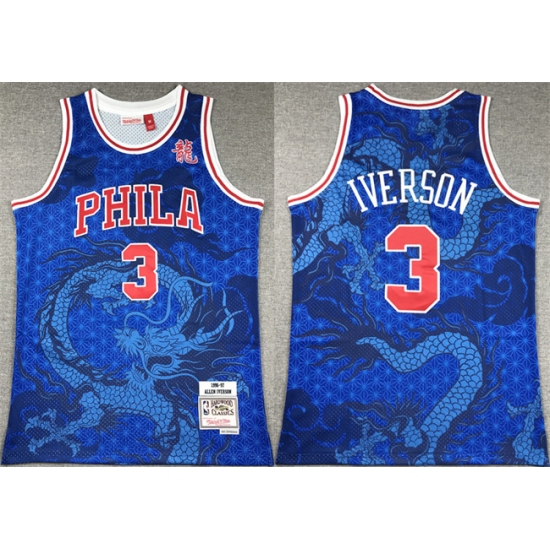 Men Philadelphia 76ers 3 Allen Iverson Royal Throwback Stitched Basketball Jersey