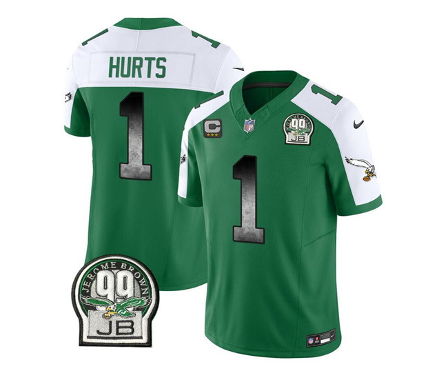 Home>NFL>Philadelphia Eagles>Men>Men Philadelphia Eagles 1 Jalen Hurts Green White 2023 F U S E With 3 Star C Patch Throwback Vapor Untouchable Limited Stitched Football Jersey