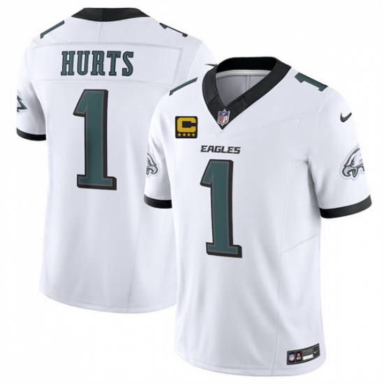 Men Philadelphia Eagles 1 Jalen Jurts White 2025 F U S E With 4 Star C Patch Vapor Untouchable Limited Stitched Football Jersey