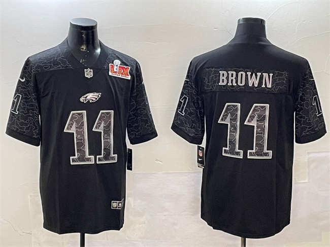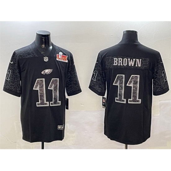 Men Philadelphia Eagles 11 A J Brown Black 2025 Super Bowl LIX Patch Reflective Vapor Untouchable Limited Stitched Football Jersey