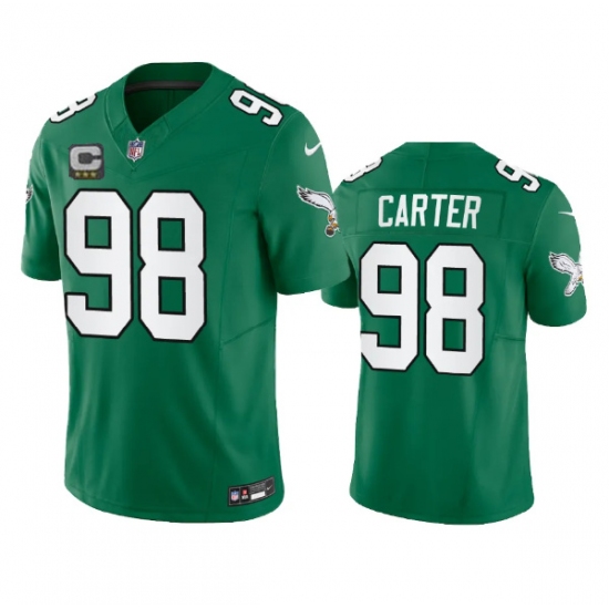 Men Philadelphia Eagles 98 Jalen Carter Green 2023 F U S E With C Patch Vapor Untouchable Stitched Football Jersey