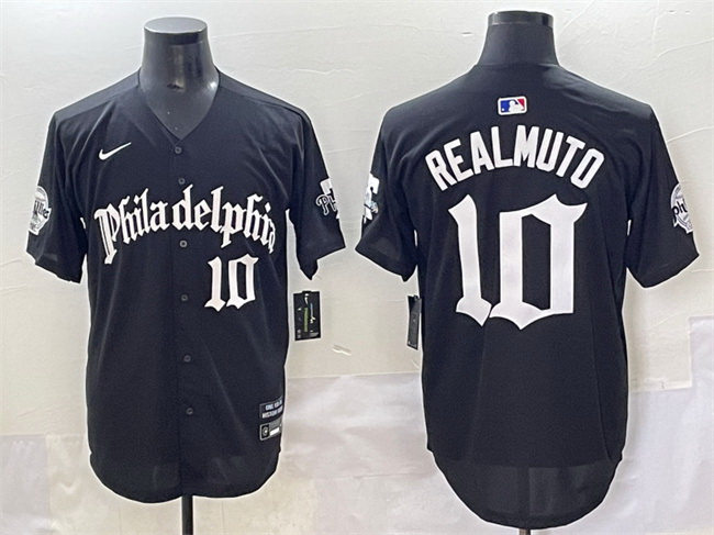 Home>MLB>Philadelphia Phillies>Men>Men Philadelphia Phillies 10 J T Realmuto Black Gothic Vapor Limited Stitched Jersey