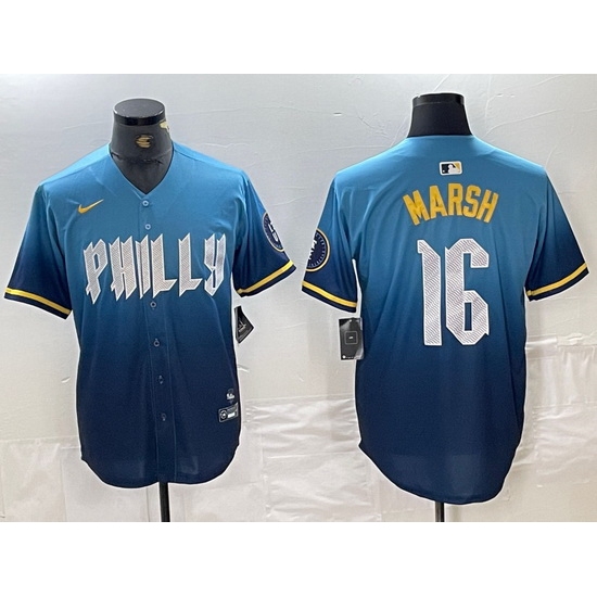 Men Philadelphia Phillies 16 Brandon Marsh Blue 2024 City Connect Limited Stitched Jersey 2