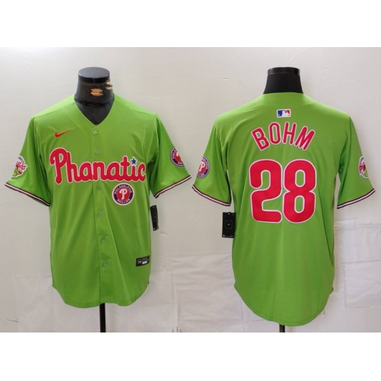Men Philadelphia Phillies 28 Alec Bohm Green With Patch Stitched Jersey 1