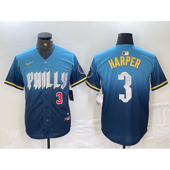 Men Philadelphia Phillies 3 Bryce Harper Blue 2024 City Connect Limited Stitched Jersey 6