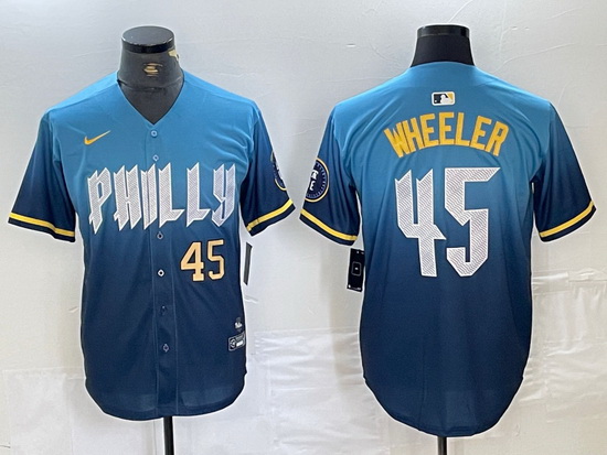 Home>MLB>Philadelphia Phillies>Men>Men Philadelphia Phillies 45 Zack Wheeler Blue 2024 City Connect Limited Stitched Baseball Jersey 2