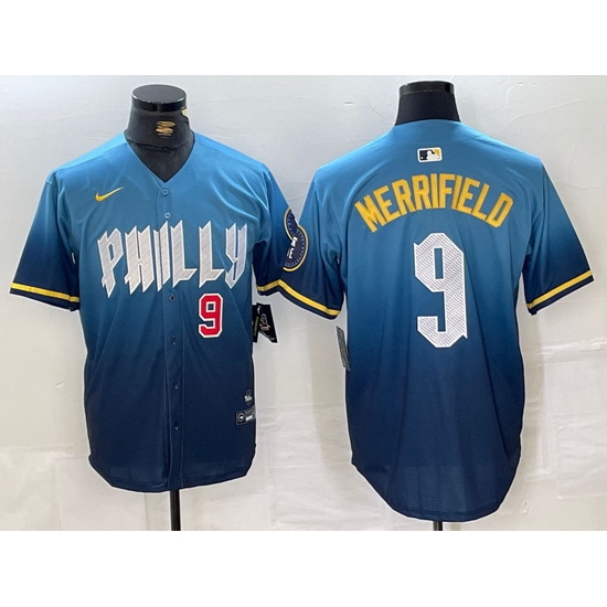 Men Philadelphia Phillies 9 Whit Merrifield Blue 2024 City Connect Limited Stitched Jersey 1