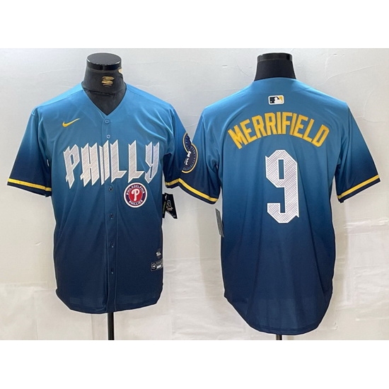 Men Philadelphia Phillies 9 Whit Merrifield Blue 2024 City Connect Limited Stitched Jersey 3