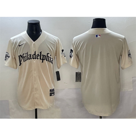 Men Philadelphia Phillies Blank Cream Gothic Vapor Limited Stitched Jersey