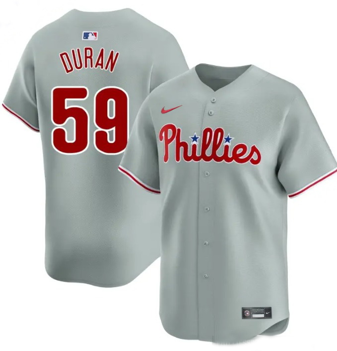 Men Philadelphia Phillies Jhoan Duran #59 Gray Limited Cool Base Away
