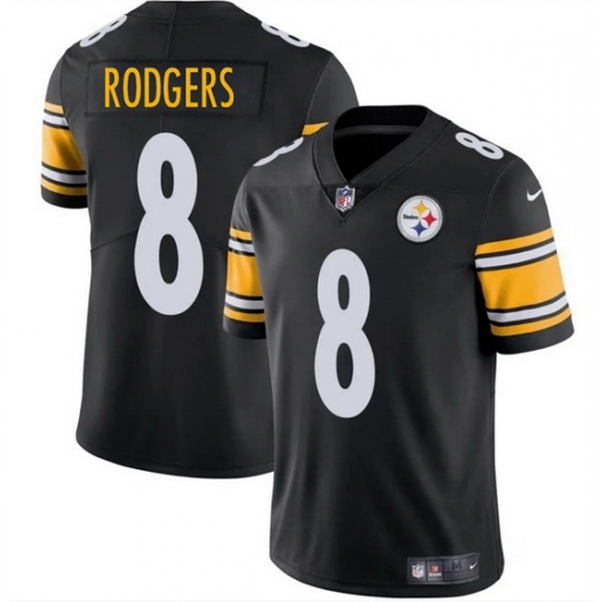 Men Pittsburgh Steelers 8 Aaron Rodgers Black 2025 Vapor Limited Stitched Football Jersey