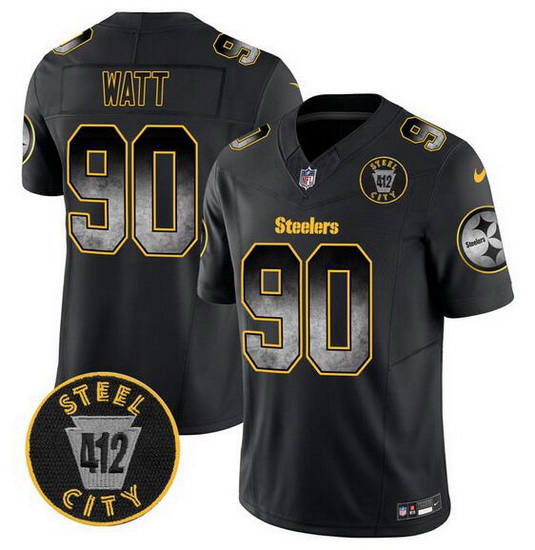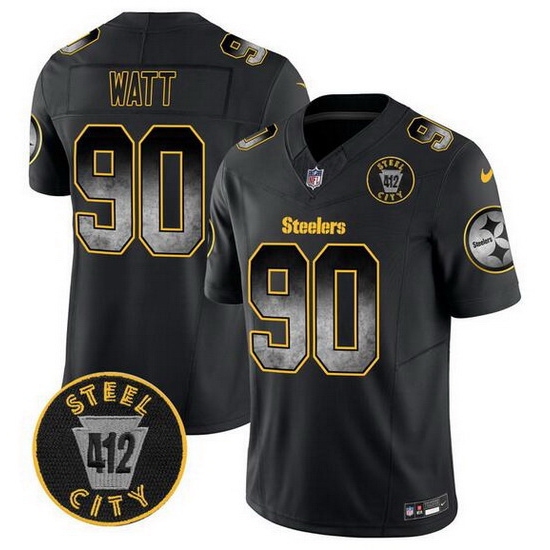 Men Pittsburgh Steelers 90 T J Watt Black F U S E Arch Smoke 412 Patch Vapor Limited Stitched Football Jersey