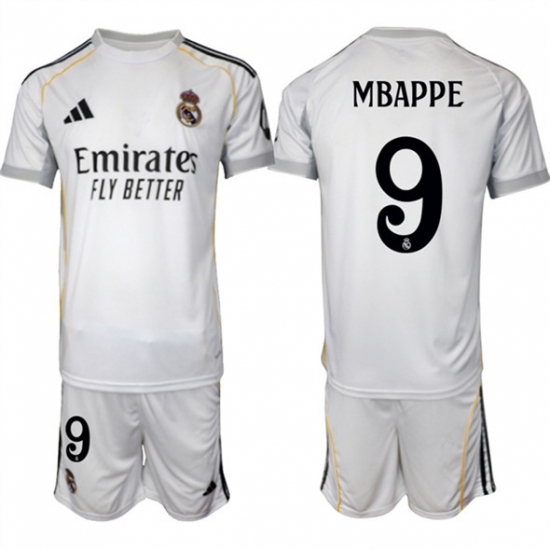 Men Real Madrid 9 Kylian Mbappe 25 26 White Home Soccer Jersey Suit