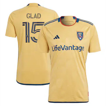 Home>Soccer>MLS Soccer Jerseys>Real Salt Lake>Men Real Salt Lake Justen Glad 2023 24 Away Replica Gold
