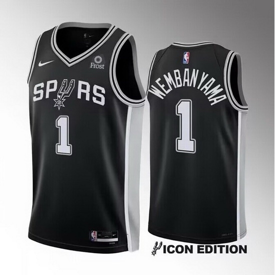 Home>NBA>San Antonio Spurs>Men>Men San Antonio Spurs 1 Victor Wembanyama Black 2022 23 Icon Edition Stitched Basketball Jersey