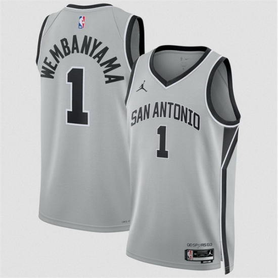 Home>NBA>San Antonio Spurs>Men>Men San Antonio Spurs 1 Victor Wembanyama Silver 2025 Statement Edition Stitched Basketball Jersey