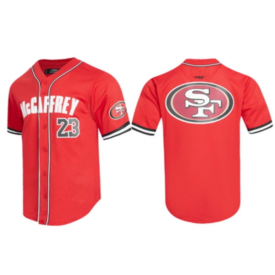 Home>NFL>San Francisco 49ers>Men>Men San Francisco 49ers 23 Christian McCaffrey Mesh Button Up Stitched Baseball Jersey
