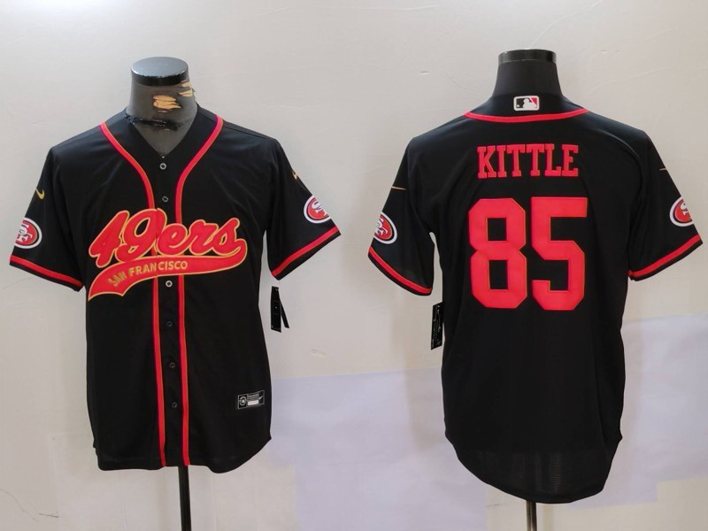 Men San Francisco 49ers 85 George Kittle Black With Patch Cool Base Stitched Baseball Jersey