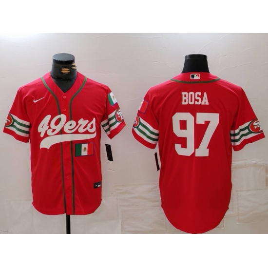 Men San Francisco 49ers 97 Nick Bosa Red With Patch Cool Base Stitched Baseball Jersey 1