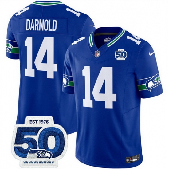 Home>NFL>Seattle Seahawks>Men>Men Seattle Seahawks 14 Sam Darnold Royal 2025 F U S E 50th Anniversary Patch Throwback Vapor Limited Stitched Football Jersey