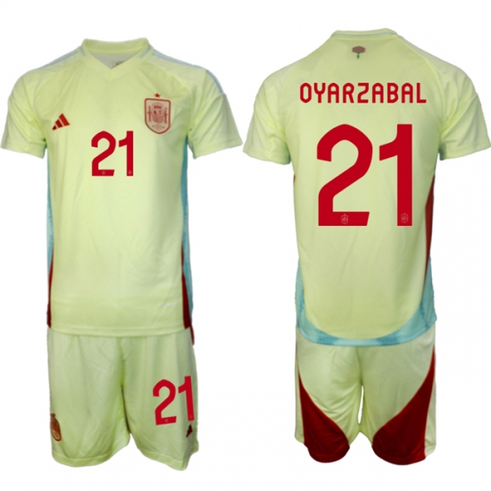 Men Spain Team 21 Mikel Oyarzabal 2024 25 Yellow Away Soccer Jersey Suit
