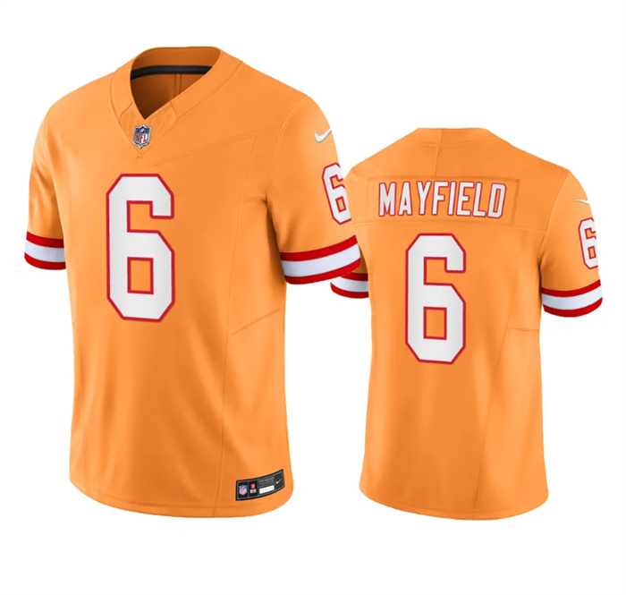 Home>NFL>Tampa Bay Buccaneers>Men>Men Tampa Bay Buccaneers 6 Baker Mayfield Orange Throwback Limited Stitched Jersey