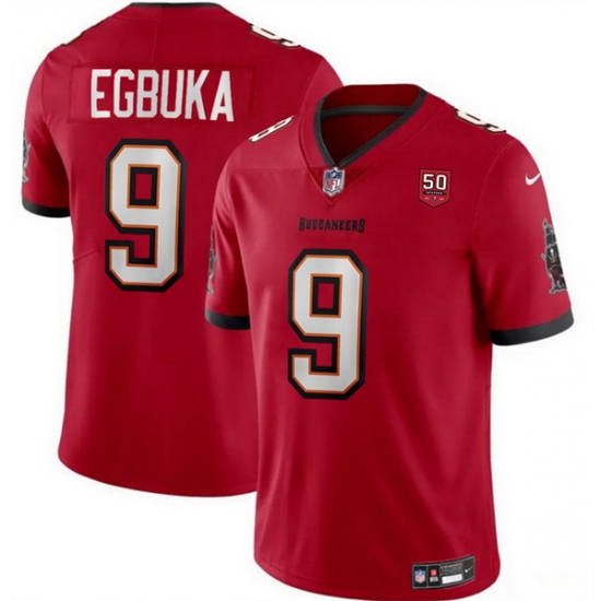Home>NFL>Tampa Bay Buccaneers>Men>Men Tampa Bay Buccaneers 9 Emeka Egbuka Red 2025 Draft 50th Anniversary Patch Vapor Untouchable Limited Stitched Football Jersey