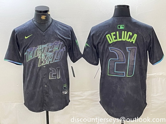 Home>MLB>Tampa Bay Rays>Men>Men Tampa Bay Rays 21 Jonny DeLuca Charcoal 2024 City Connect Limited Stitched jerseys 3
