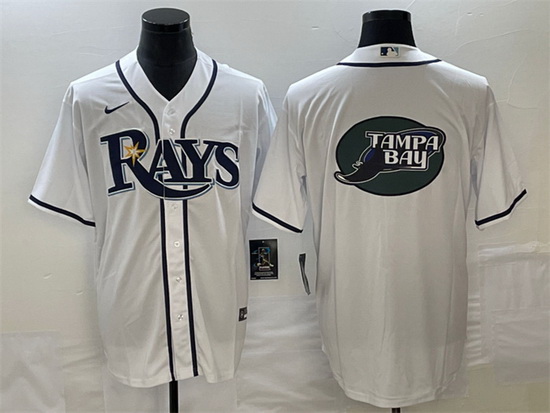 Men Tampa Bay Rays White Team Big Logo Cool Base Stitched Baseball Jersey