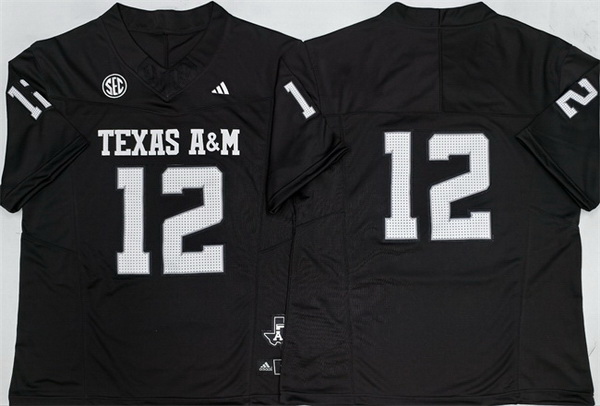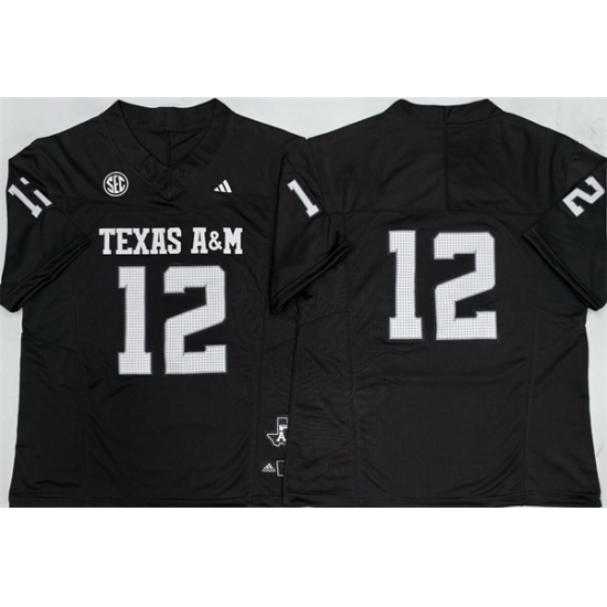 Men Texas A 26M Aggies Lions 12 Premier Strategy Black 2025 F U S E Stitched Jersey