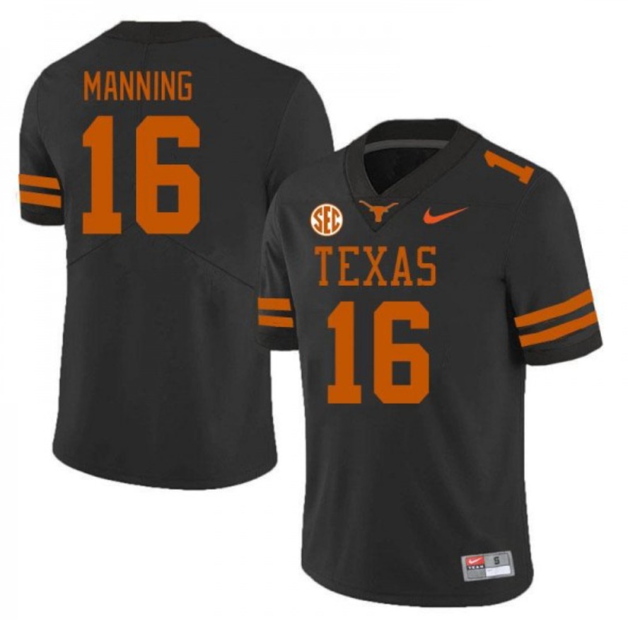 Home>NCAA>Texas Longhorns>Men Texas Longhorn #16 Arch Manning Black SEC Patch F U S E Limited Jersey