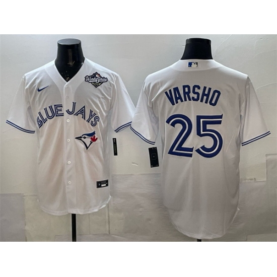 Home>MLB>Toronto Blue Jays>Men>Men Toronto Blue Jays 25 Daulton Varsho White 2025 World Series Home Cool Base Stitched Baseball Jersey