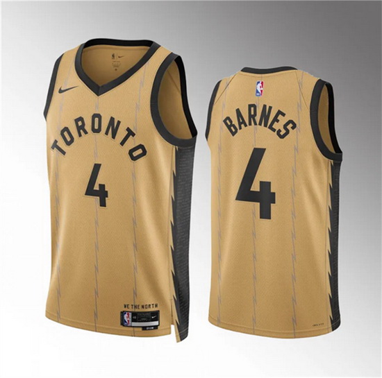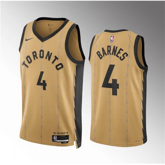 Home>NBA>Toronto Raptors>Men>Men Toronto Raptors 4 Scottie Barnes Gold 2023 24 City Edition Stitched Basketball Jersey