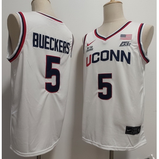 Home>NCAA>Others>Men UConn Huskies #5 Paige Bueckers Navy White Stitched Basketball Jersey