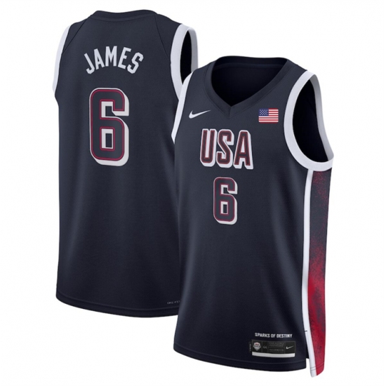 Men USA Basketball 6 LeBron James Navy 2024 Swingman Stitched Jersey