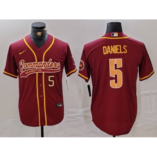 Men Washington Commanders 5 Jayden Daniels Burgundy With Patch Cool Base Stitched Baseball Jersey 1