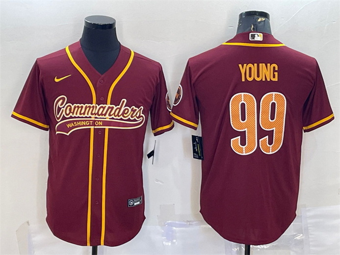 Men Washington Commanders 99 Chase Young Burgundy With Patch Cool Base Stitched Baseball Jersey