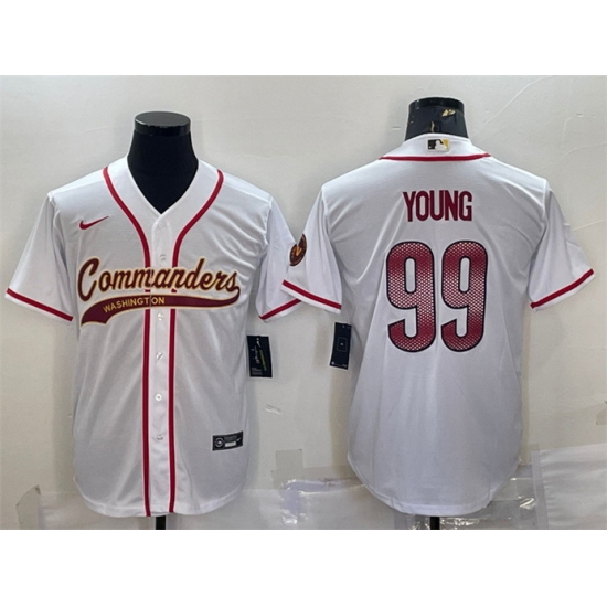 Home>NFL>Washington Commanders>Men>Men Washington Commanders 99 Chase Young White With Patch Cool Base Stitched Baseball Jersey