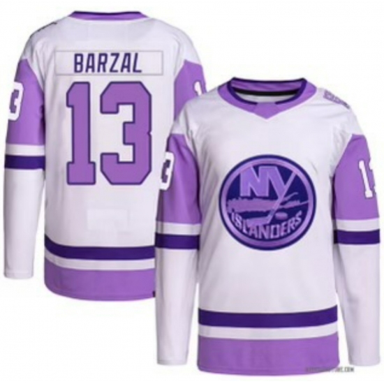 Home>NHL>New York Islanders>Men>Mens Adidas New York Islanders 13 Mathew Barzal White Purple NHL Jersey