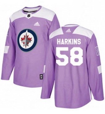 Home>NHL>Winnipeg Jets>Men>Mens Adidas Winnipeg Jets 58 Jansen Harkins Authentic Purple Fights Cancer Practice NHL Jersey