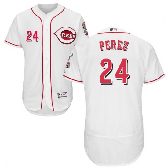 Home>MLB>Cincinnati Reds>Men>Mens Majestic Cincinnati Reds 24 Tony Perez White Home Flex Base Authentic Collection MLB Jersey