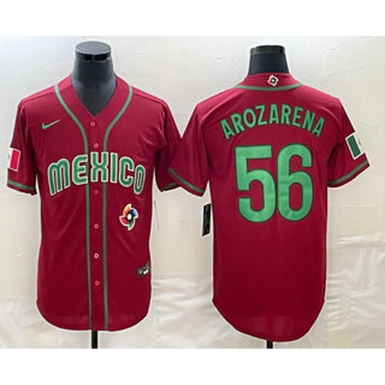 Men's Mexico Baseball #56 Randy Arozarena 2023 Red World Classic Stitched Jerseys