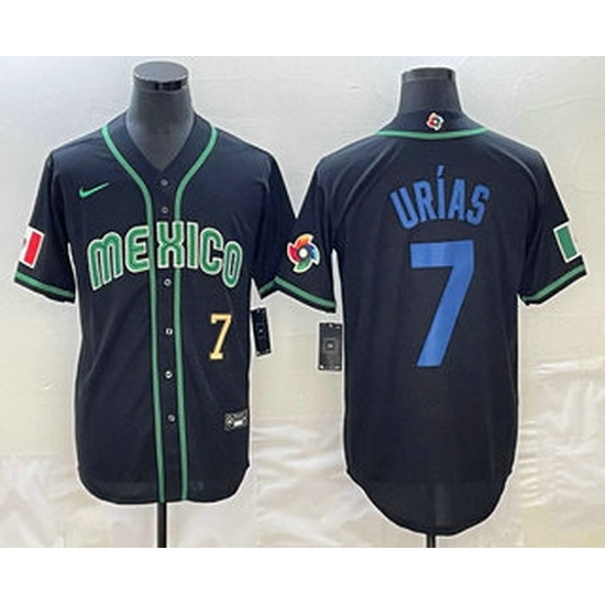 Men's Mexico Baseball #7 Julio Urias Number 2023 Black Blue World Classic Stitched Jerseys