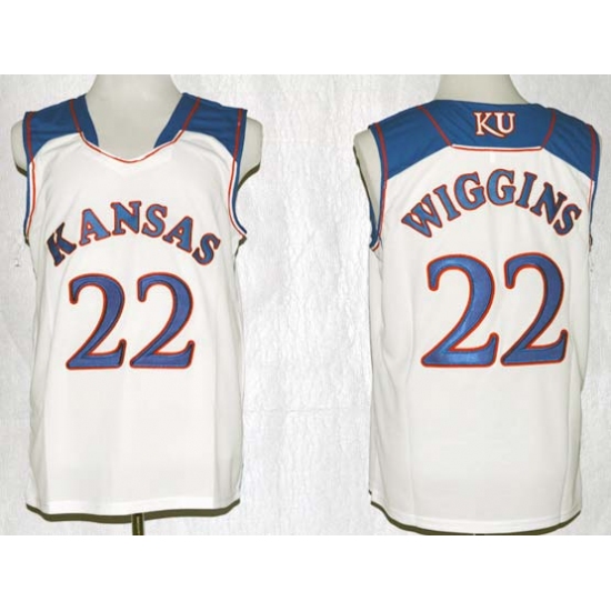 Mens Ncaa Nba Kansas Jayhawks #22 Wiggins White Jersey