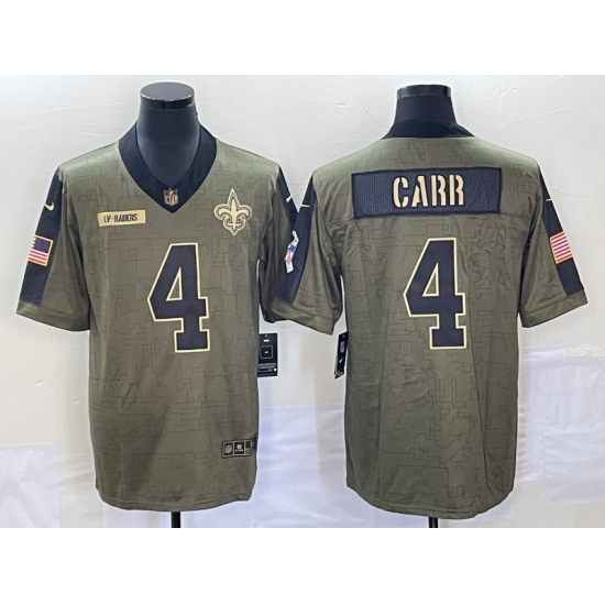 Home>NFL>New Orleans Saints>Men>Men's New Orleans Saints #4 Derek Carr 2021 Olive Salute To Service Limited Stitched Jersey