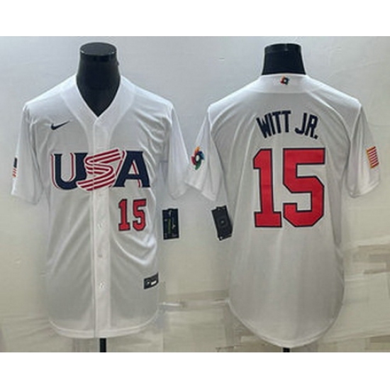 Men's USA Baseball #15 Bobby Witt Jr Number 2023 White World Baseball Classic Replica Stitched Jersey